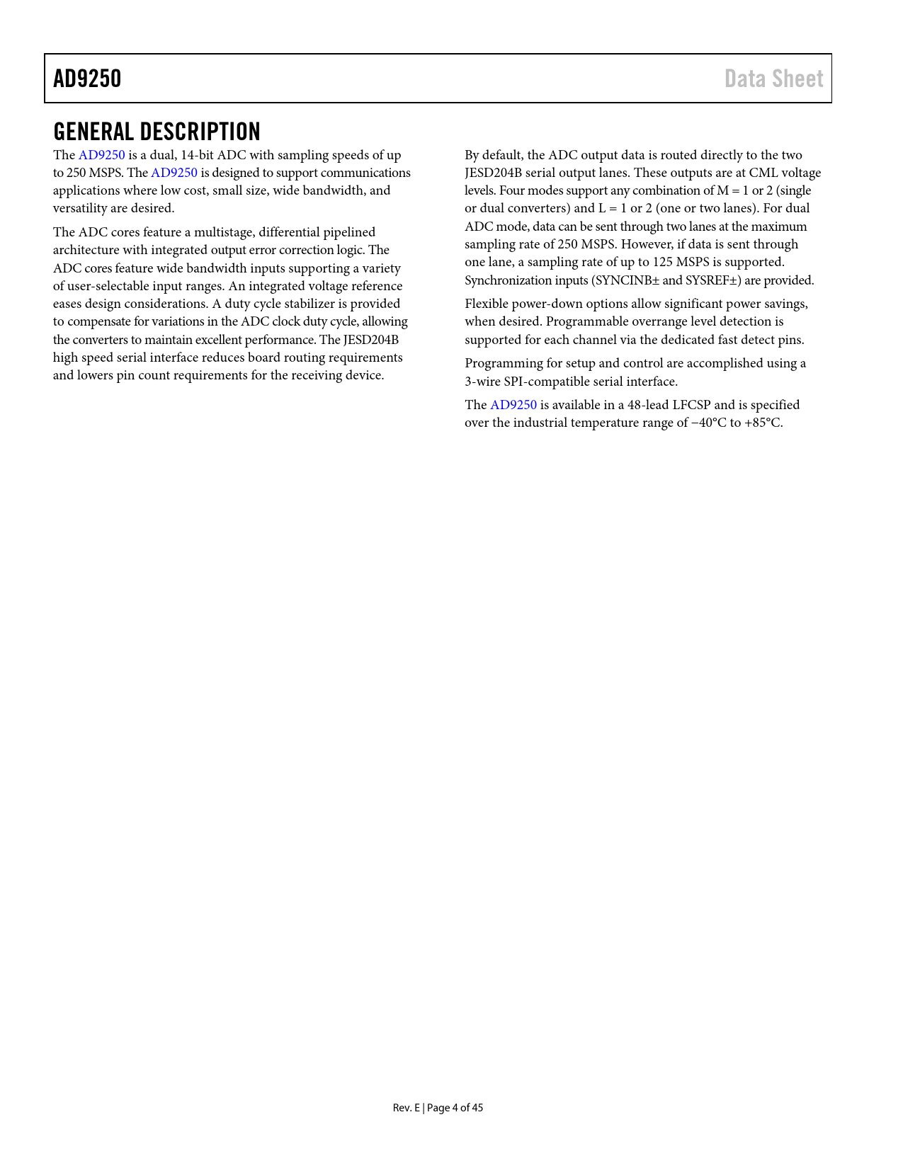 Páginas / Página45 / 4 — AD9250. Data Sheet. GENERAL DESCRIPTION