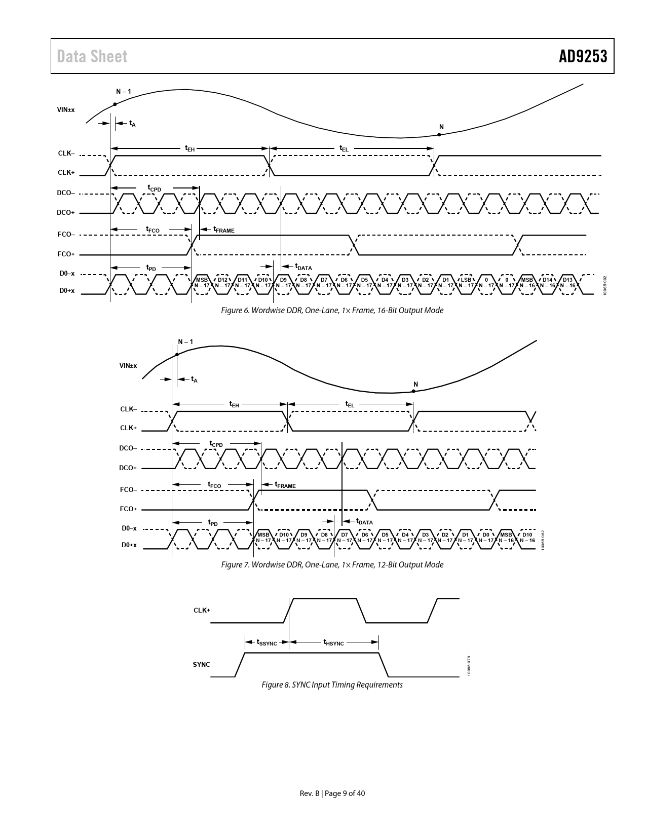 Data Sheet AD9253 N – 1 VIN±x tA N t t CLK– EH EL CLK+ t DCO– CPD DCO+ tFCO tFRAME FCO– FCO+ t tDATA PD D0–x
