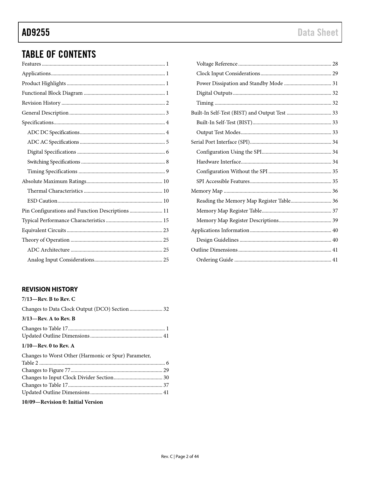 AD9255 Data Sheet TABLE OF CONTENTS REVISION HISTORY 7/13—Rev B to Rev C 3/13—Rev A to Rev B 1/10—Rev 0 to Rev A