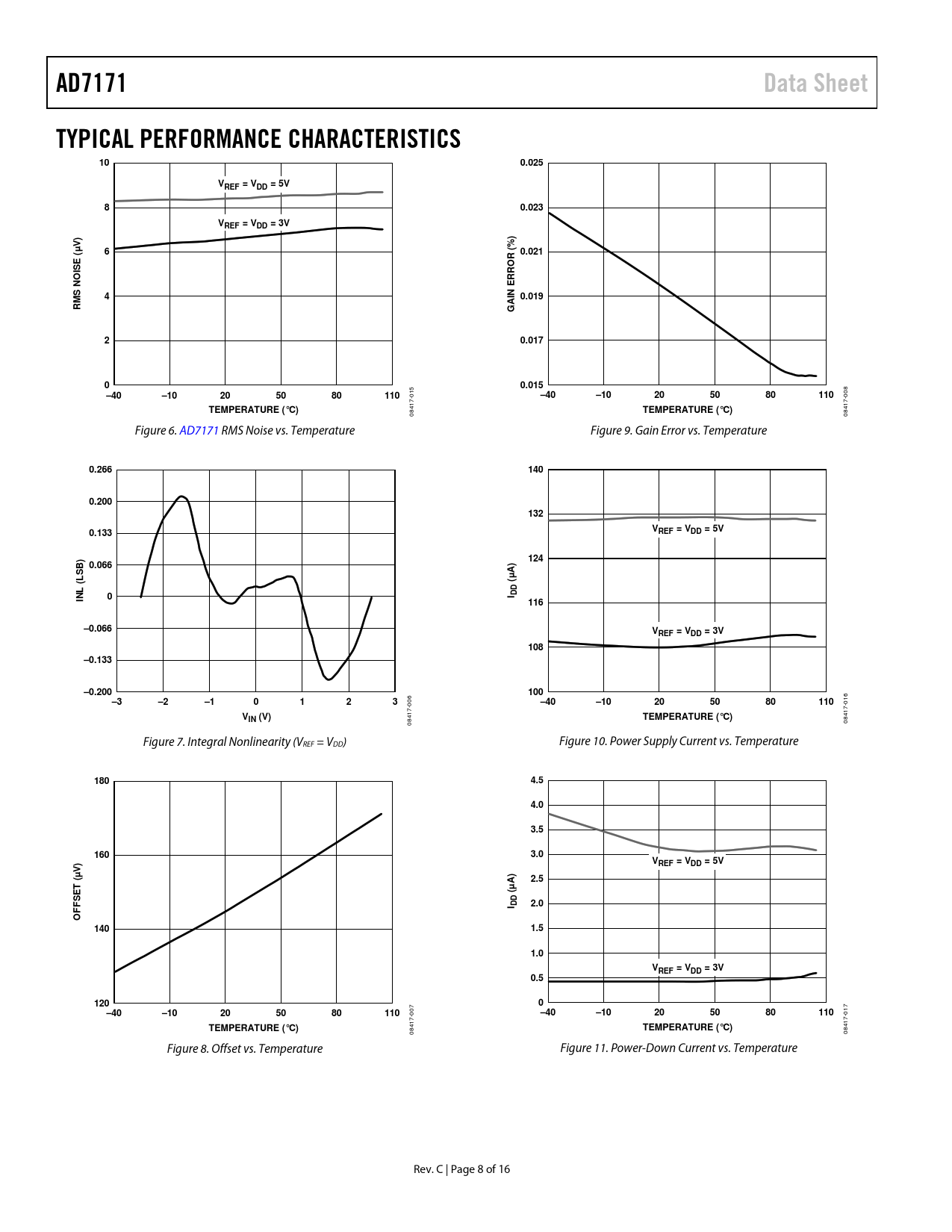 AD7171. Data Sheet. TYPICAL PERFORMANCE CHARACTERISTICS. 0.025. VREF = VDD = 5V. 0.023. VREF = VDD = 3V. 0.021. R (. ISE (µ O. RRO. N E 0.019