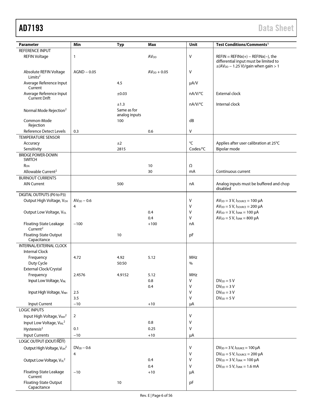 AD7193 Data Sheet Parameter Min Typ Max Unit Test Conditions/Comments1