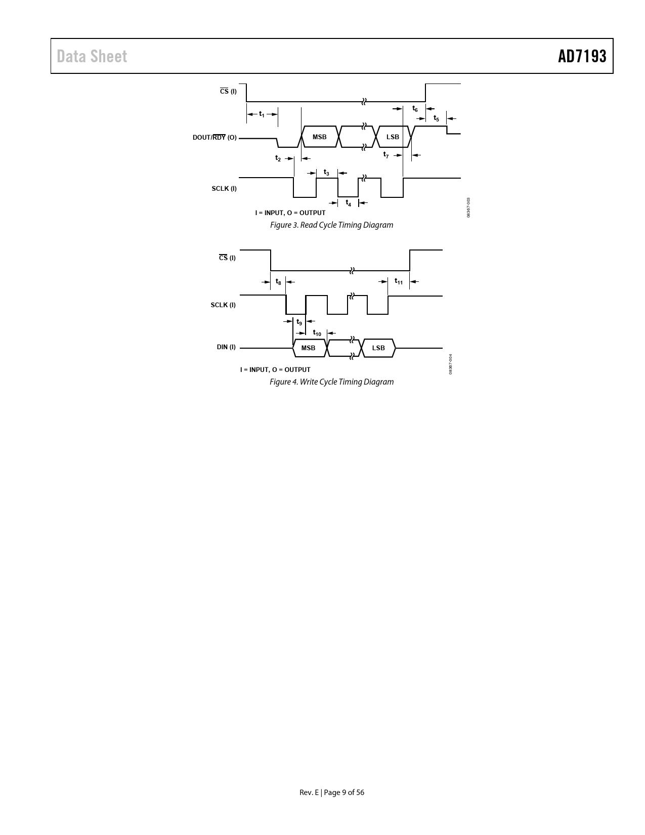 Data Sheet. AD7193. CS (I). DOUT/RDY (O). MSB. LSB. SCLK (I). I = INPUT, O = OUTPUT. t11. t10. DIN (I)
