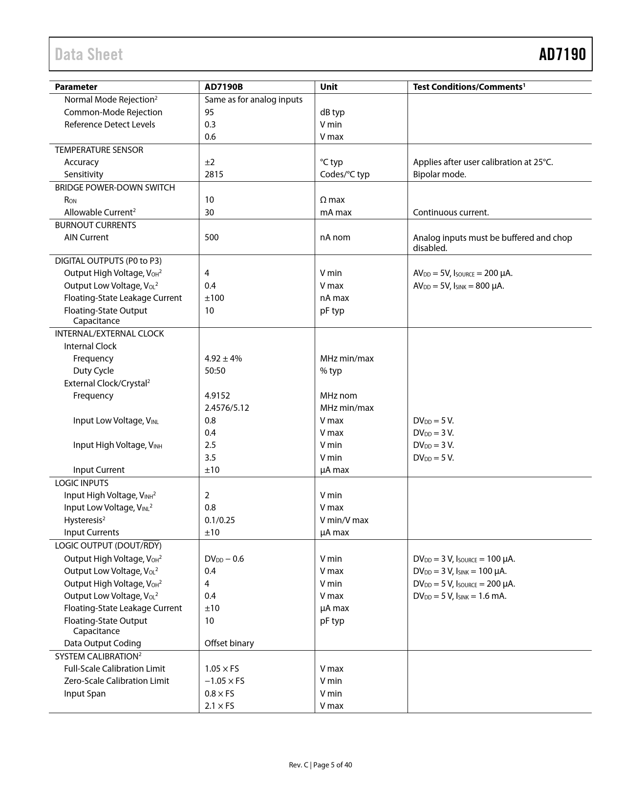Data Sheet AD7190 Parameter AD7190B Unit Test Conditions/Comments1