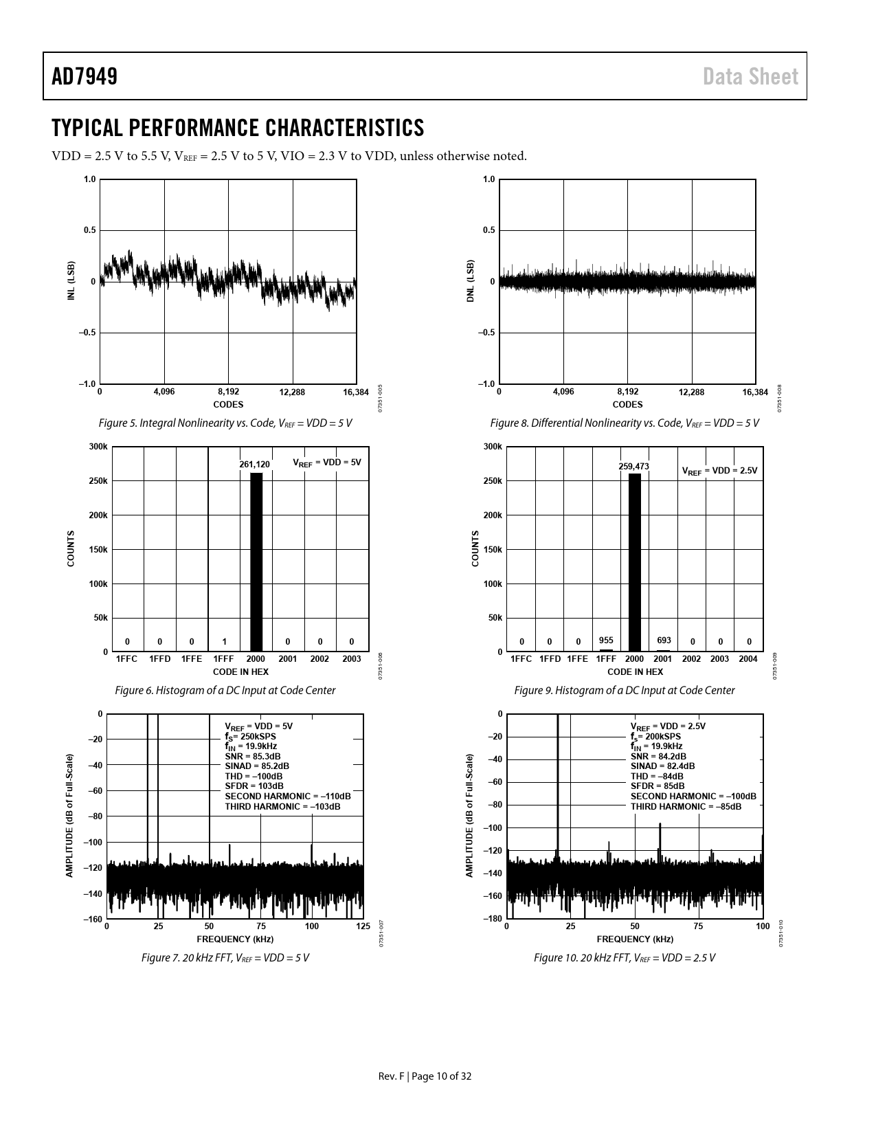 AD7949. Data Sheet. TYPICAL PERFORMANCE CHARACTERISTICS. 1.0. 0.5. L (. –0.5. –1.0. 4,096. 8,192. 12,288. 16,384. CODES. 300k. VREF = VDD = 5V