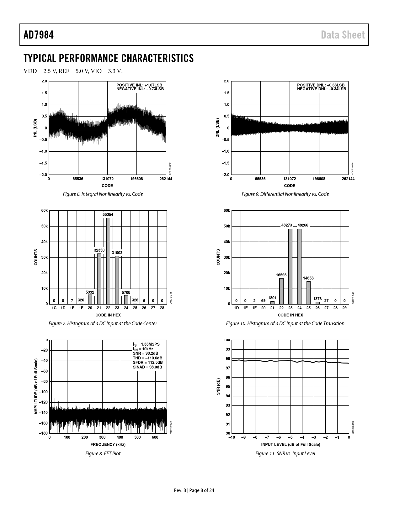 AD7984. Data Sheet. TYPICAL PERFORMANCE CHARACTERISTICS. 2.0. POSITIVE INL: +1.07LSB. POSITIVE DNL: +0.63LSB