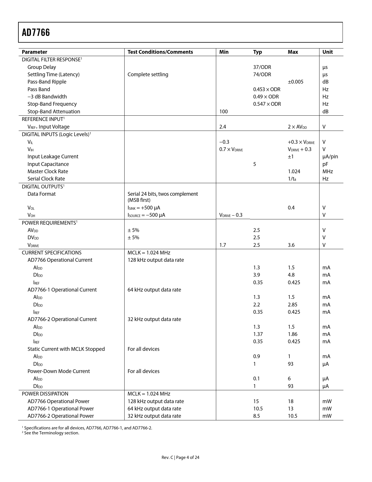 AD7766 Parameter Test Conditions/Comments Min Typ Max Unit