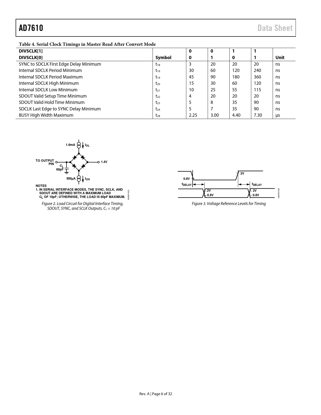 | Páginas / Página | 33 / 7 — AD7610. Data Sheet. Table 4. Serial Clock Timings in Master Read After … |