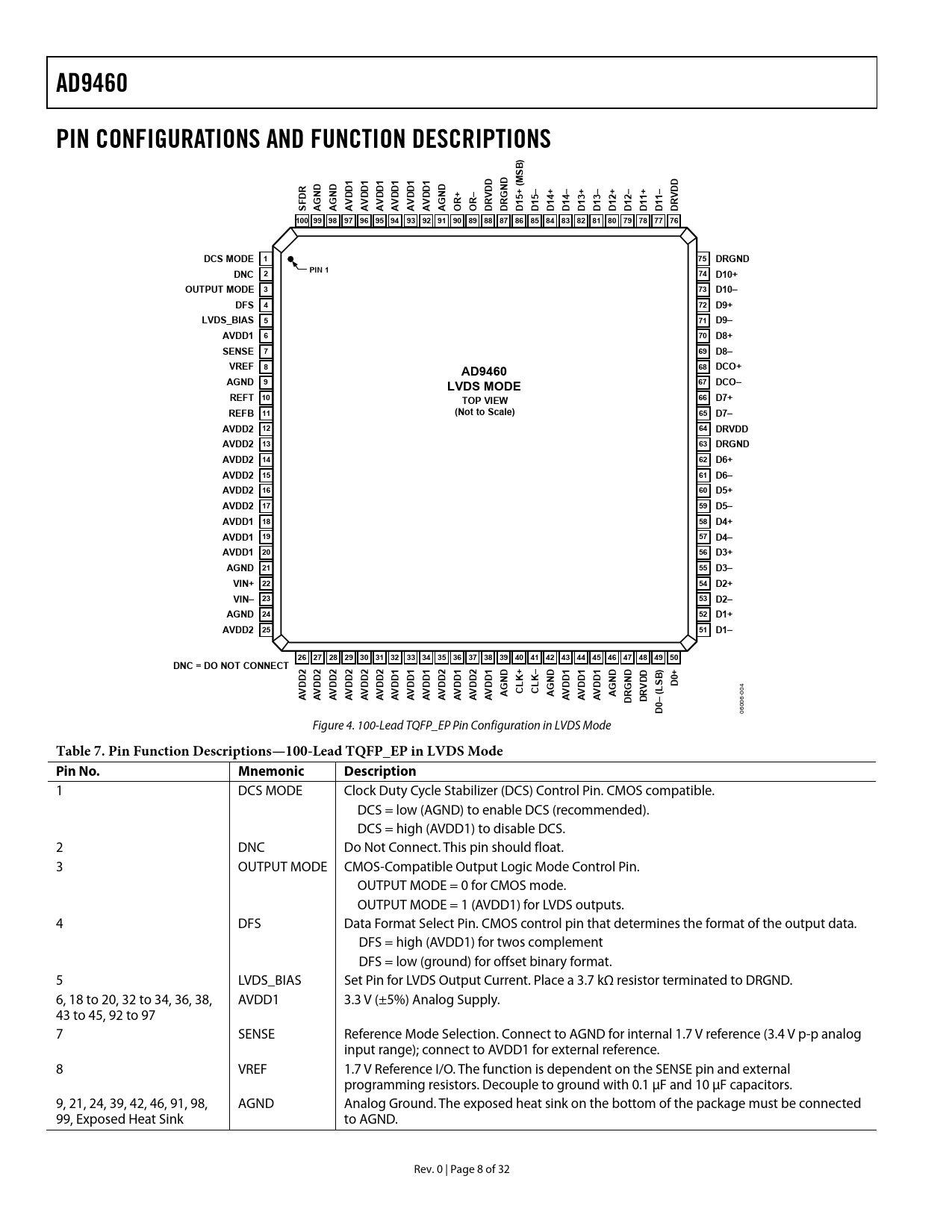 Table 7. Pin Function Descriptions—100-Lead TQFP_EP in LVDS Mode Pin No. Mnemonic Description
