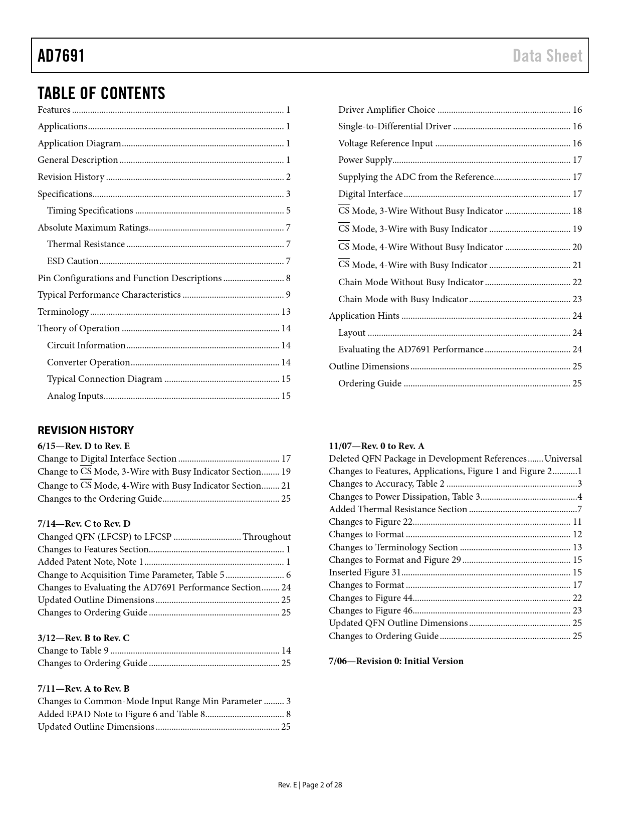 AD7691 Data Sheet TABLE OF CONTENTS REVISION HISTORY 6/15—Rev D to Rev E 11/07—Rev 0 to Rev A 7/14—Rev C to Rev D