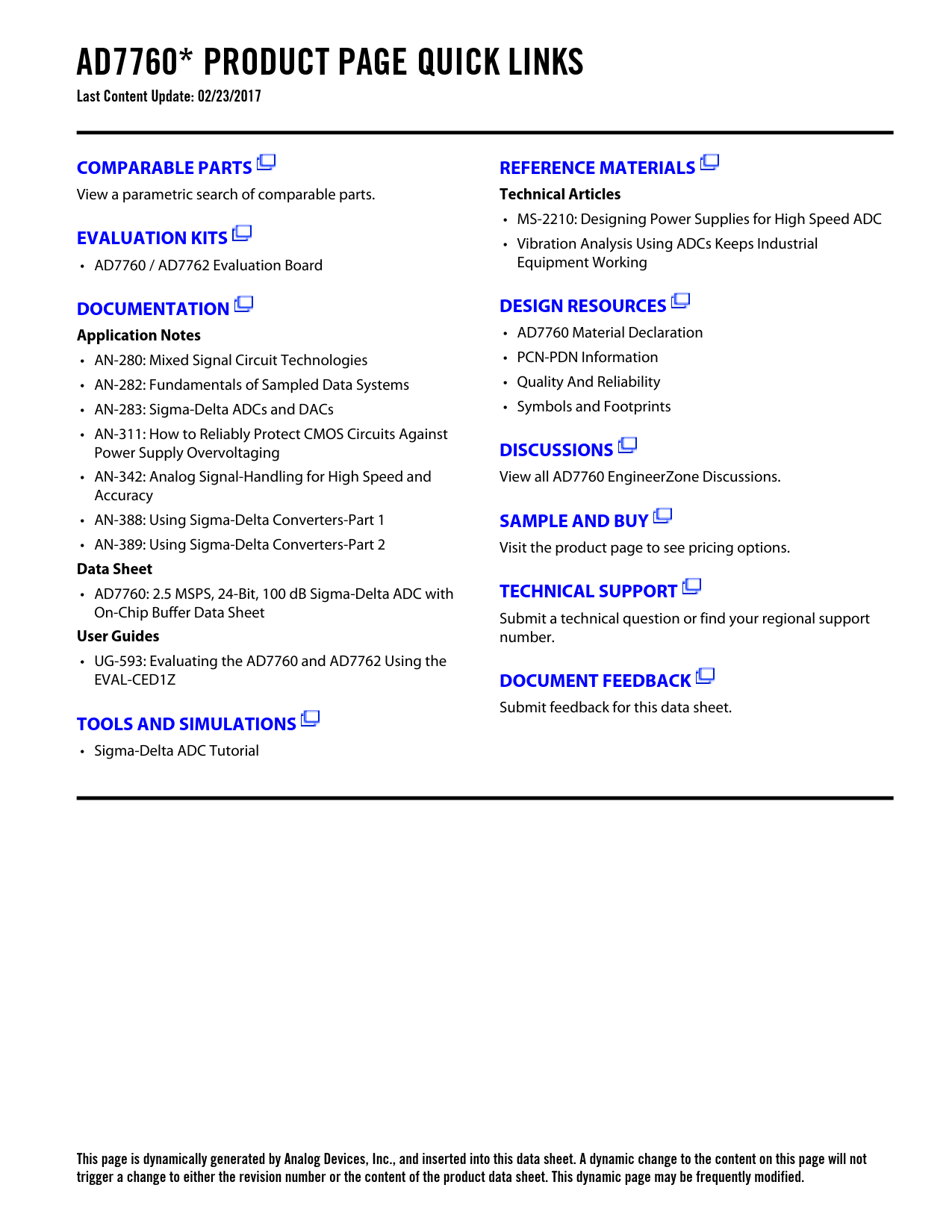 This page is dynamically generated by Analog Devices, Inc., and inserted into this data sheet. A dynamic change to the content on this page will not trigger a change to either the revision number or the content of the product data sheet. This dynamic page may be frequently modified.