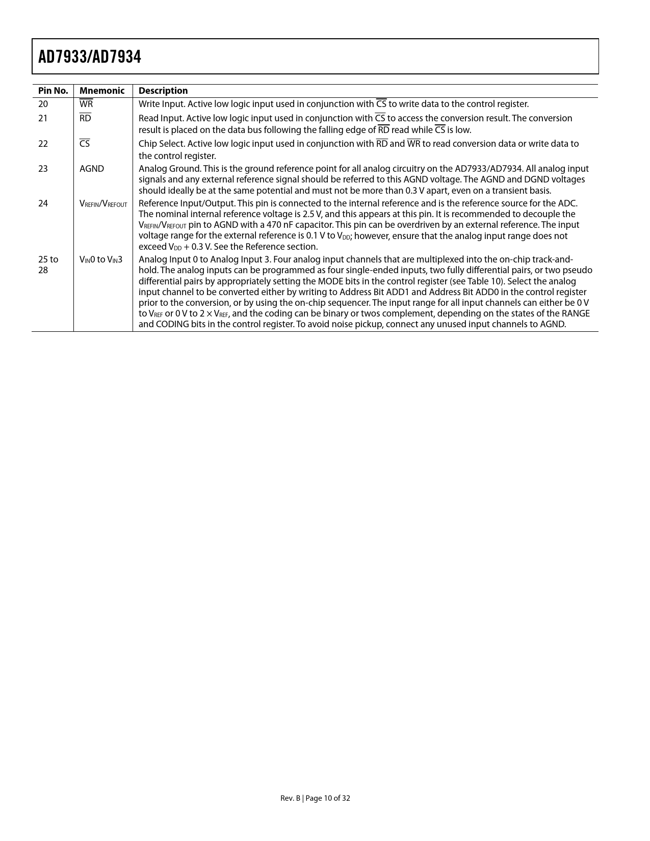 Páginas / Página32 / 10 — AD7933/AD7934. Pin No. Mnemonic. Description