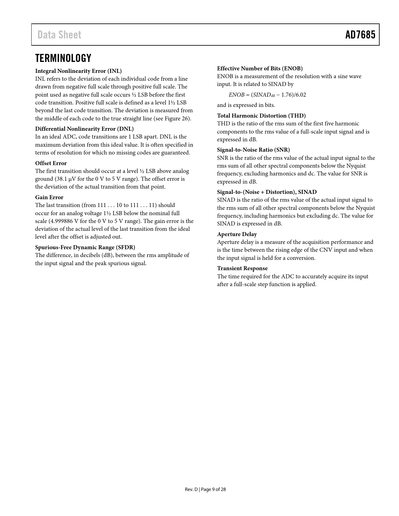 Data Sheet AD7685 TERMINOLOGY Integral Nonlinearity Error (INL) Effective Number of Bits (ENOB)