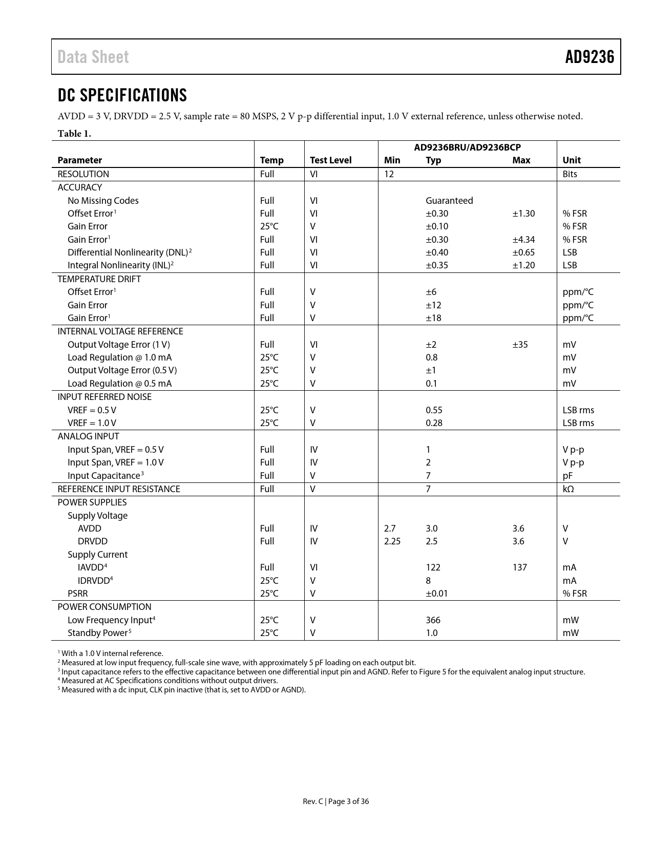 Data Sheet AD9236 DC SPECIFICATIONS