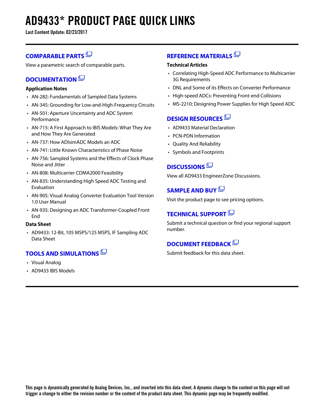 This page is dynamically generated by Analog Devices, Inc., and inserted into this data sheet. A dynamic change to the content on this page will not trigger a change to either the revision number or the content of the product data sheet. This dynamic page may be frequently modified.