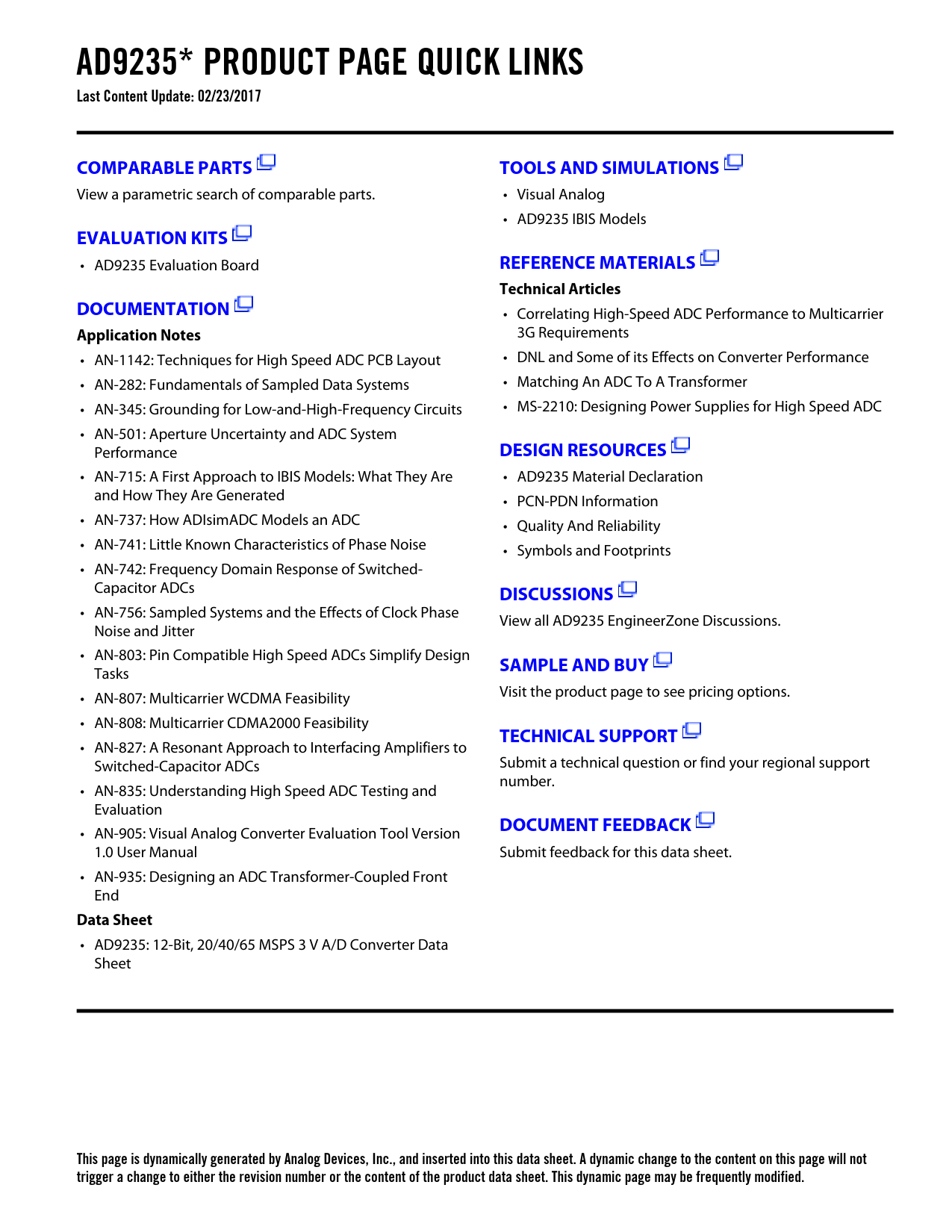This page is dynamically generated by Analog Devices, Inc., and inserted into this data sheet. A dynamic change to the content on this page will not trigger a change to either the revision number or the content of the product data sheet. This dynamic page may be frequently modified.