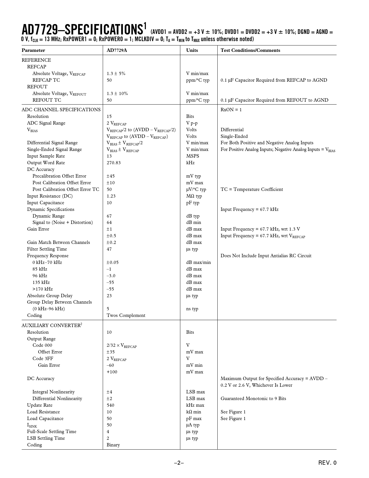 AD7729–SPECIFICATIONS1 (AVDD1 = AVDD2 = +3 V