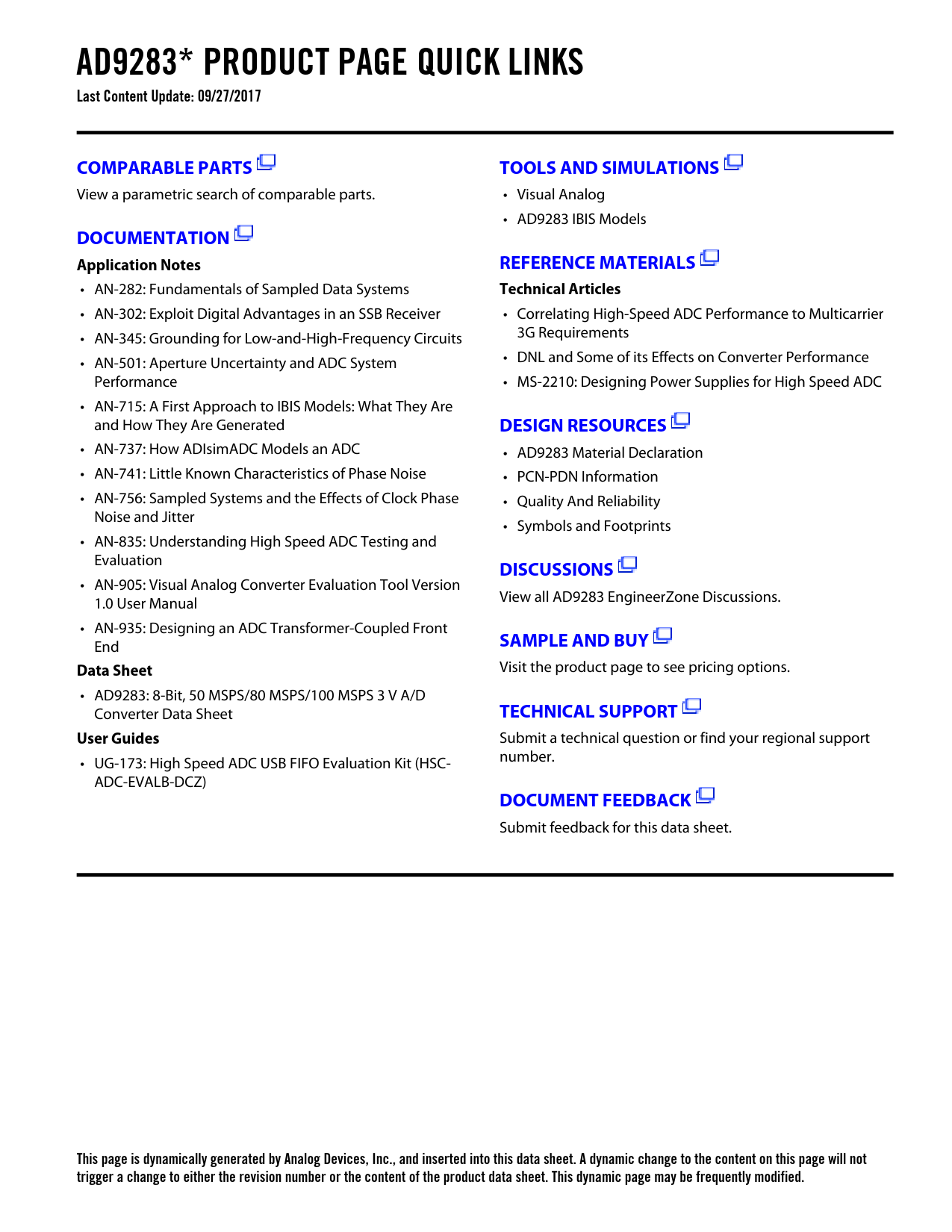 This page is dynamically generated by Analog Devices, Inc., and inserted into this data sheet. A dynamic change to the content on this page will not trigger a change to either the revision number or the content of the product data sheet. This dynamic page may be frequently modified.
