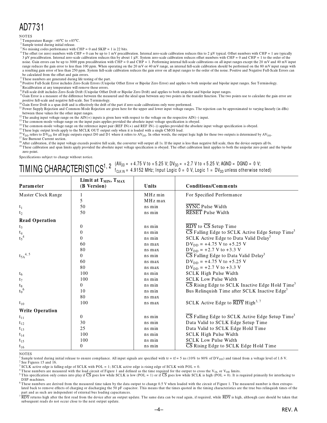 AD7731. (AV. TIMING CHARACTERISTICS1, 2. DD = +4.75 V to +5.25 V; DVDD = +2.7 V to +5.25 V; AGND = DGND = 0 V;
