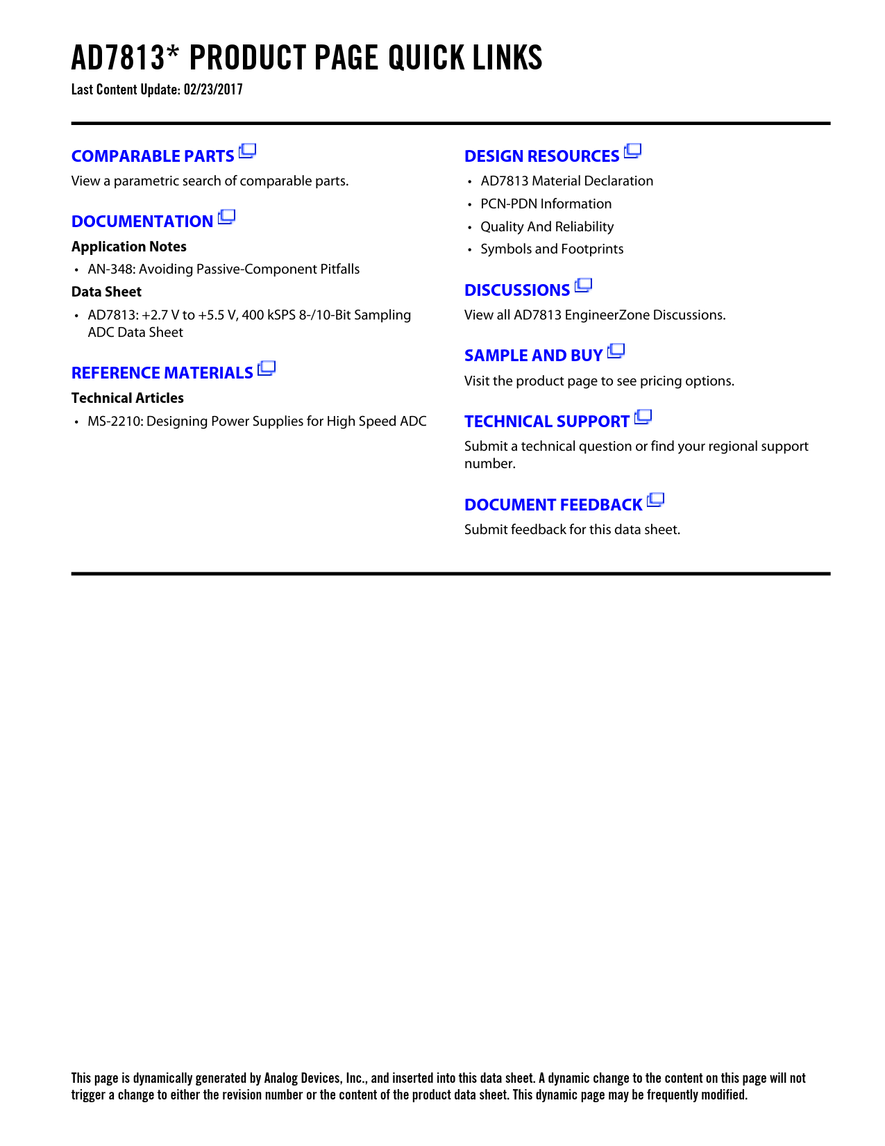 This page is dynamically generated by Analog Devices, Inc., and inserted into this data sheet. A dynamic change to the content on this page will not trigger a change to either the revision number or the content of the product data sheet. This dynamic page may be frequently modified.
