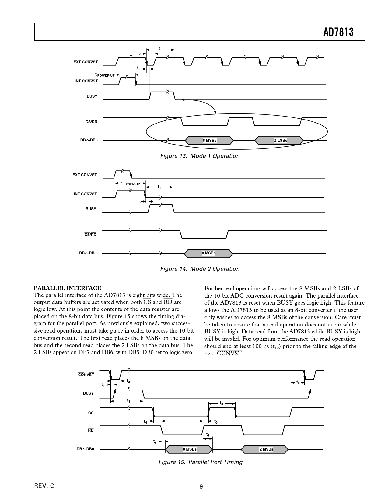 AD7813 EXT CONVST t POWER-UP INT CONVST BUSY CS/RD DB7–DB0 8 MSBs 2 LSBs PARALLEL INTERFACE CONVST 2 MSBs