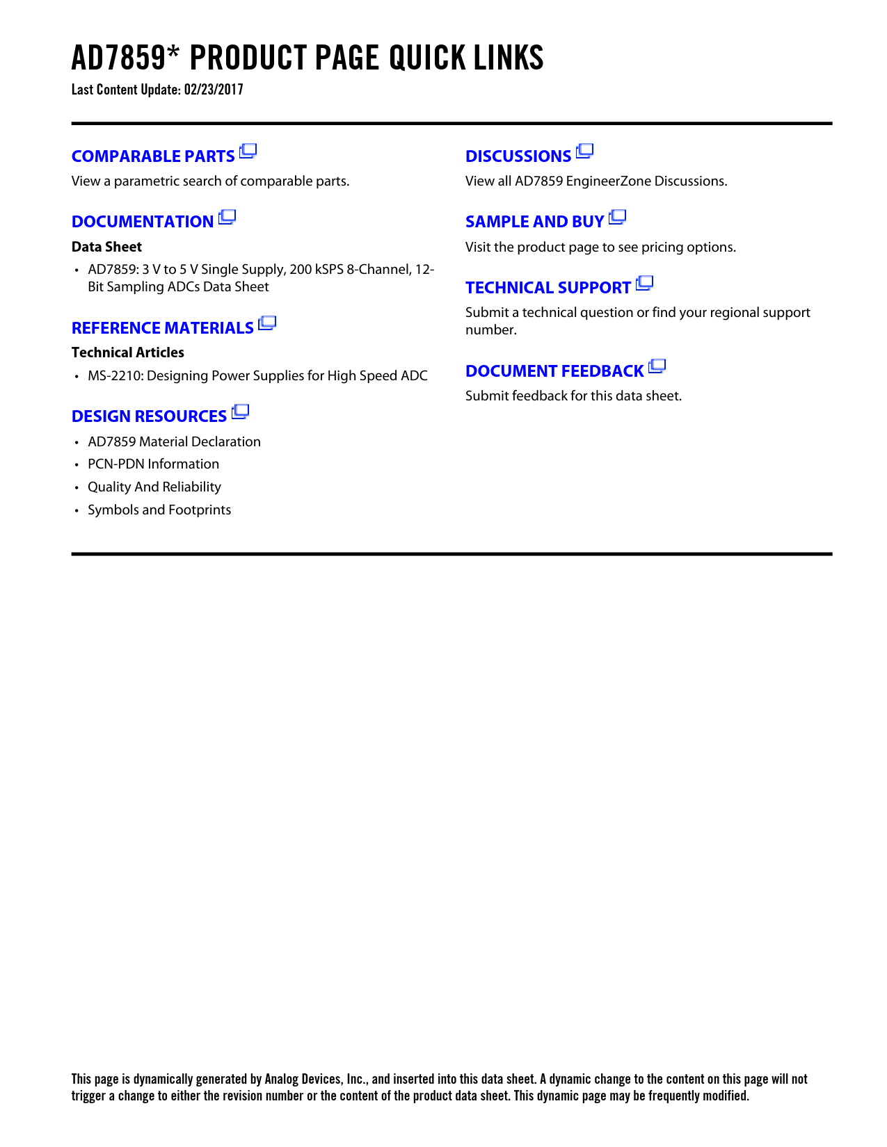 This page is dynamically generated by Analog Devices, Inc., and inserted into this data sheet. A dynamic change to the content on this page will not trigger a change to either the revision number or the content of the product data sheet. This dynamic page may be frequently modified.