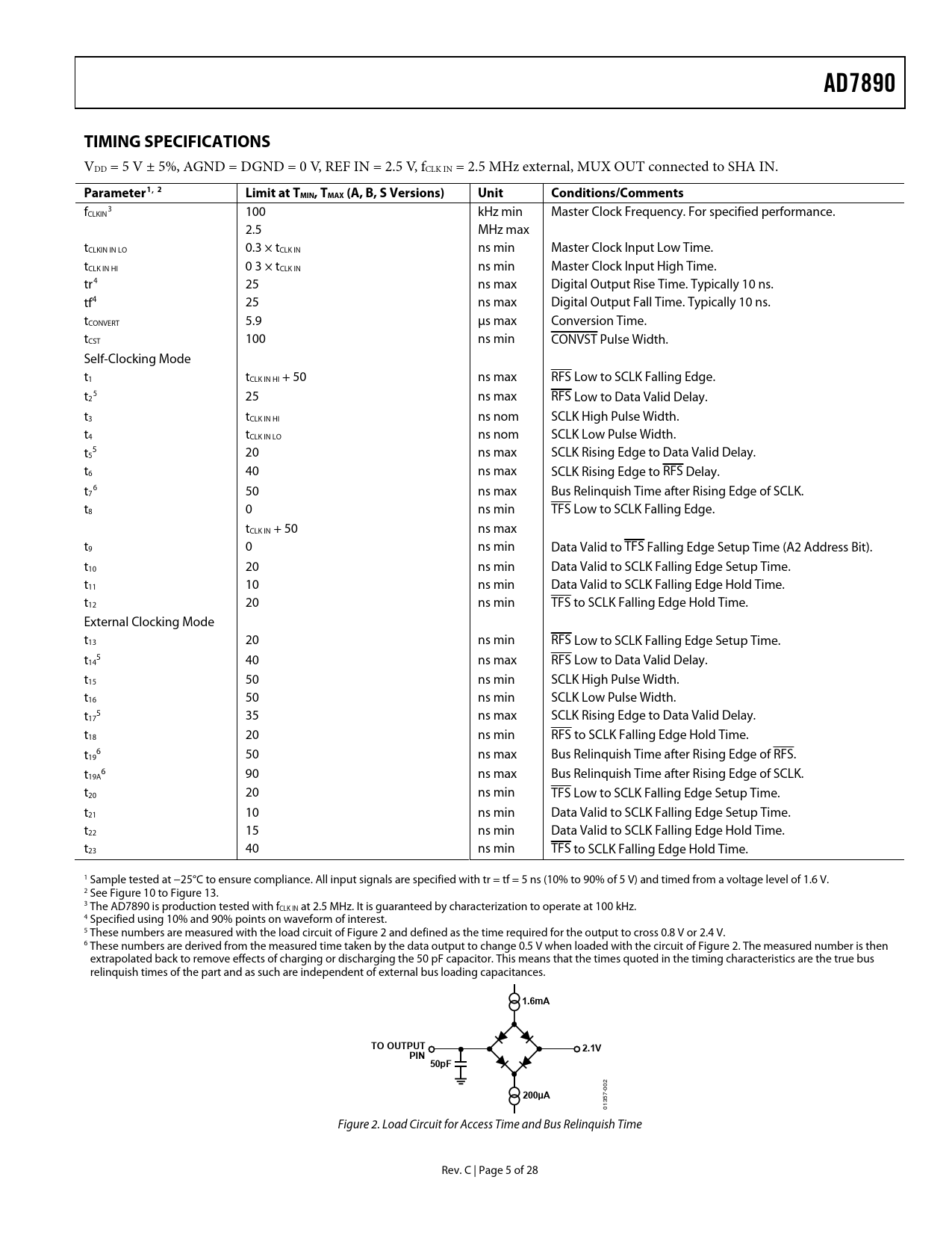 AD7890. TIMING SPECIFICATIONS. Parameter1, 2. Limit at TMIN, TMAX (A, B, S Versions). Unit. Conditions/Comments. 1.6mA. TO OUTPUT. 2.1V