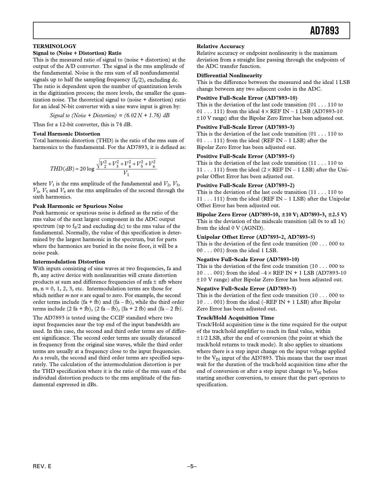 AD7893 TERMINOLOGY Relative Accuracy Signal to (Noise + Distortion) Ratio Differential Nonlinearity