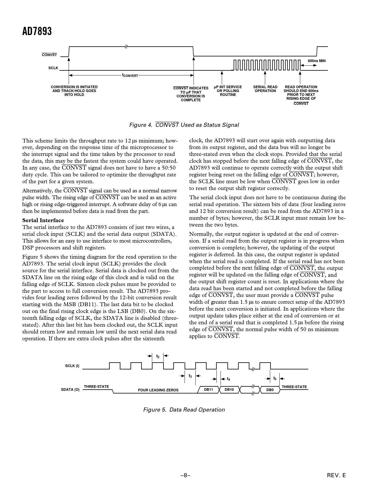 AD7893 CONVST 600ns MIN SCLK tCONVERT CONVERSION IS INITIATED CONVST INDICATES µP INT SERVICE SERIAL READ READ OPERATION AND TRACK/HOLD GOES TO µP THAT OR POLLING OPERATION SHOULD END 600ns INTO HOLD CONVERSION IS ROUTINE PRIOR TO NEXT COMPLETE RISING EDGE OF CONVST