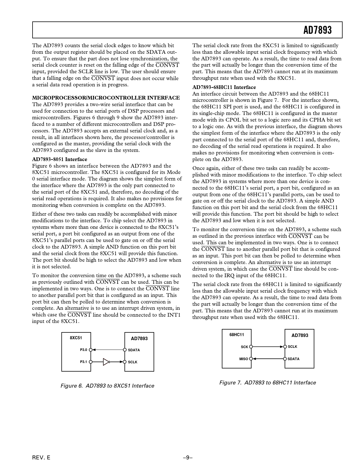 Figure 7. AD7893 to 68HC11 Interface Figure 6. AD7893 to 8XC51 Interface REV. E –9–
