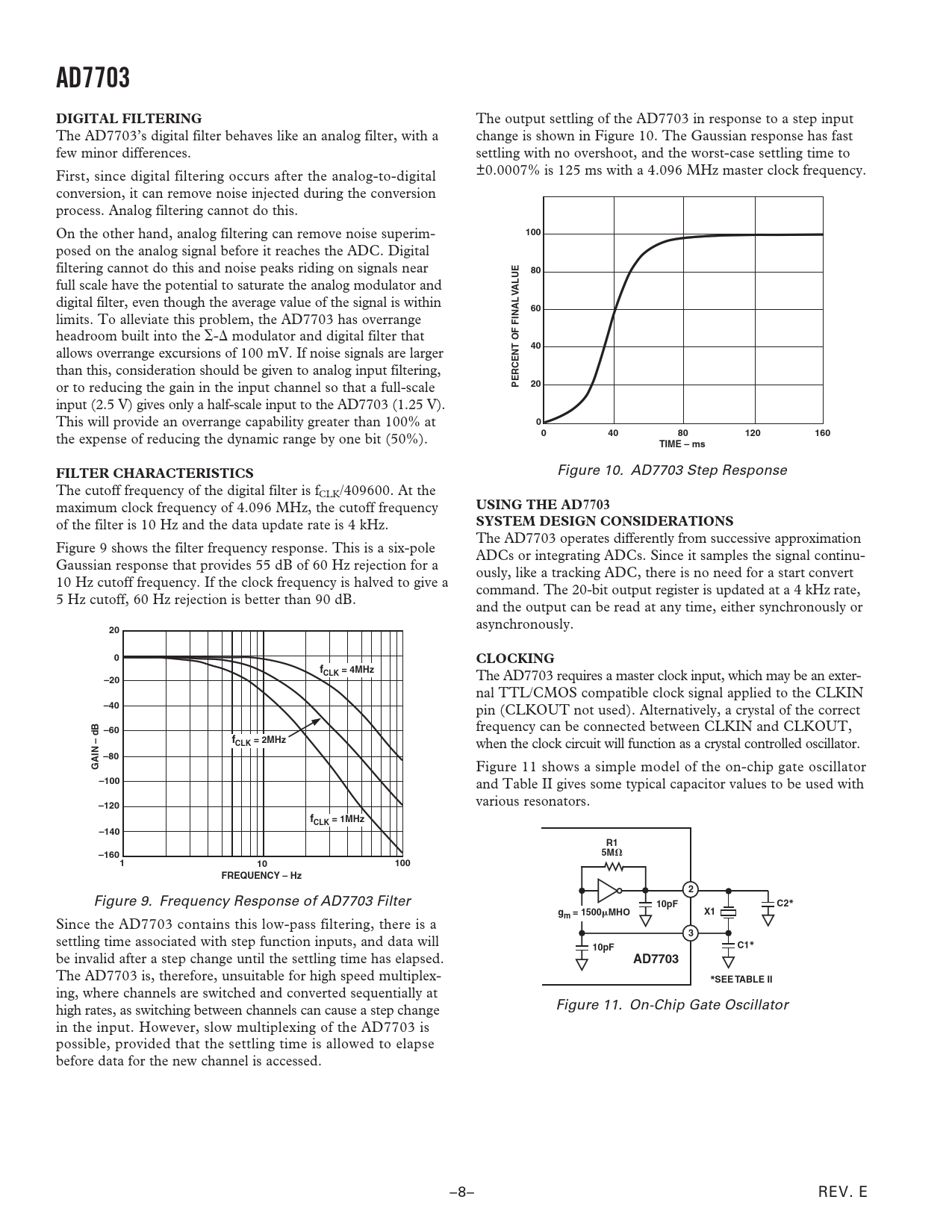 AD7703 DIGITAL FILTERING 100 ALUE V PERCENT OF FINAL 120 160 TIME – ms FILTER CHARACTERISTICS USING THE AD7703