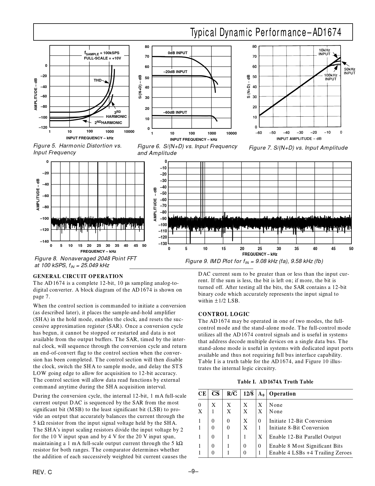 Typical Dynamic Performance–AD1674 fSAMPLE = 100kSPS 0dB INPUT FULL-SCALE = +10V 60 –20dB INPUT –20 THD –40 –60 S/(N+D) – dB –80