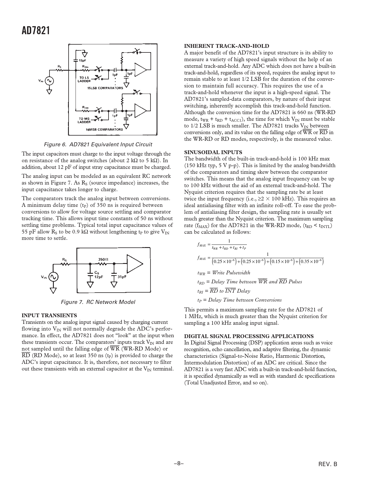 AD7821 INHERENT TRACK-AND-HOLD SINUSOIDAL INPUTS INPUT TRANSIENTS DIGITAL SIGNAL PROCESSING APPLICATIONS