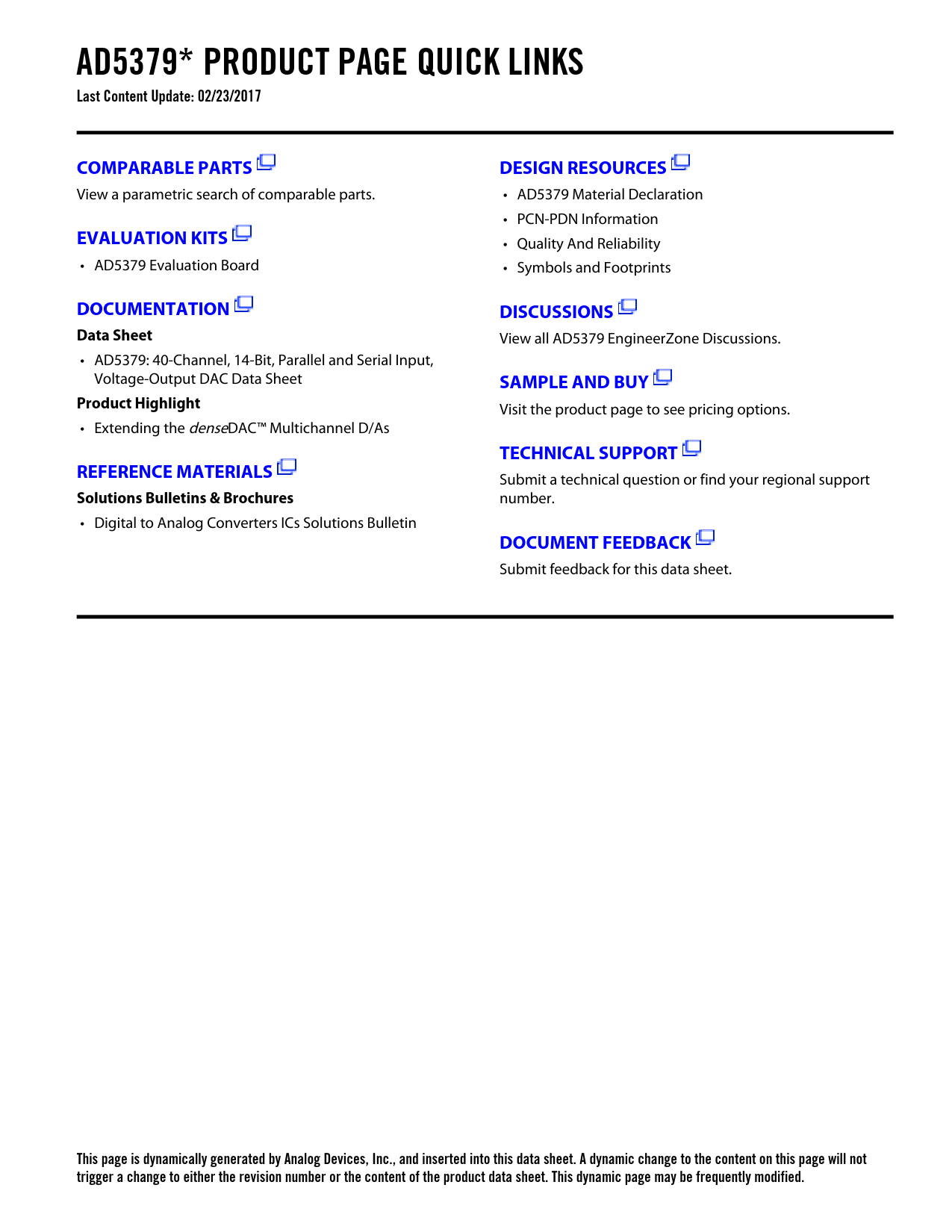 AD5379* PRODUCT PAGE QUICK LINKS Last Content Update: 02/23/2017. COMPARABLE PARTS. DESIGN RESOURCES. EVALUATION KITS