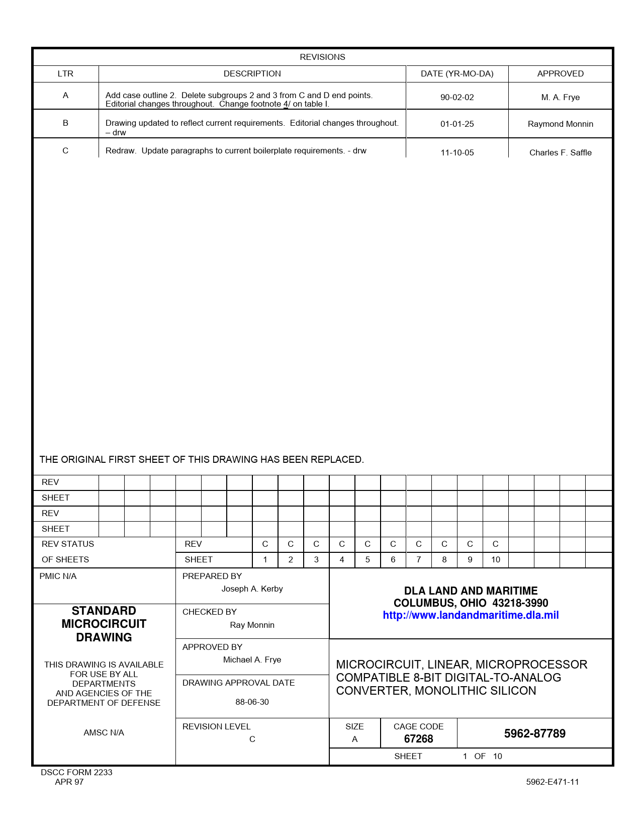 SHEET 1 OF 10 DSCC FORM 2233 APR 97 5962-E471-11