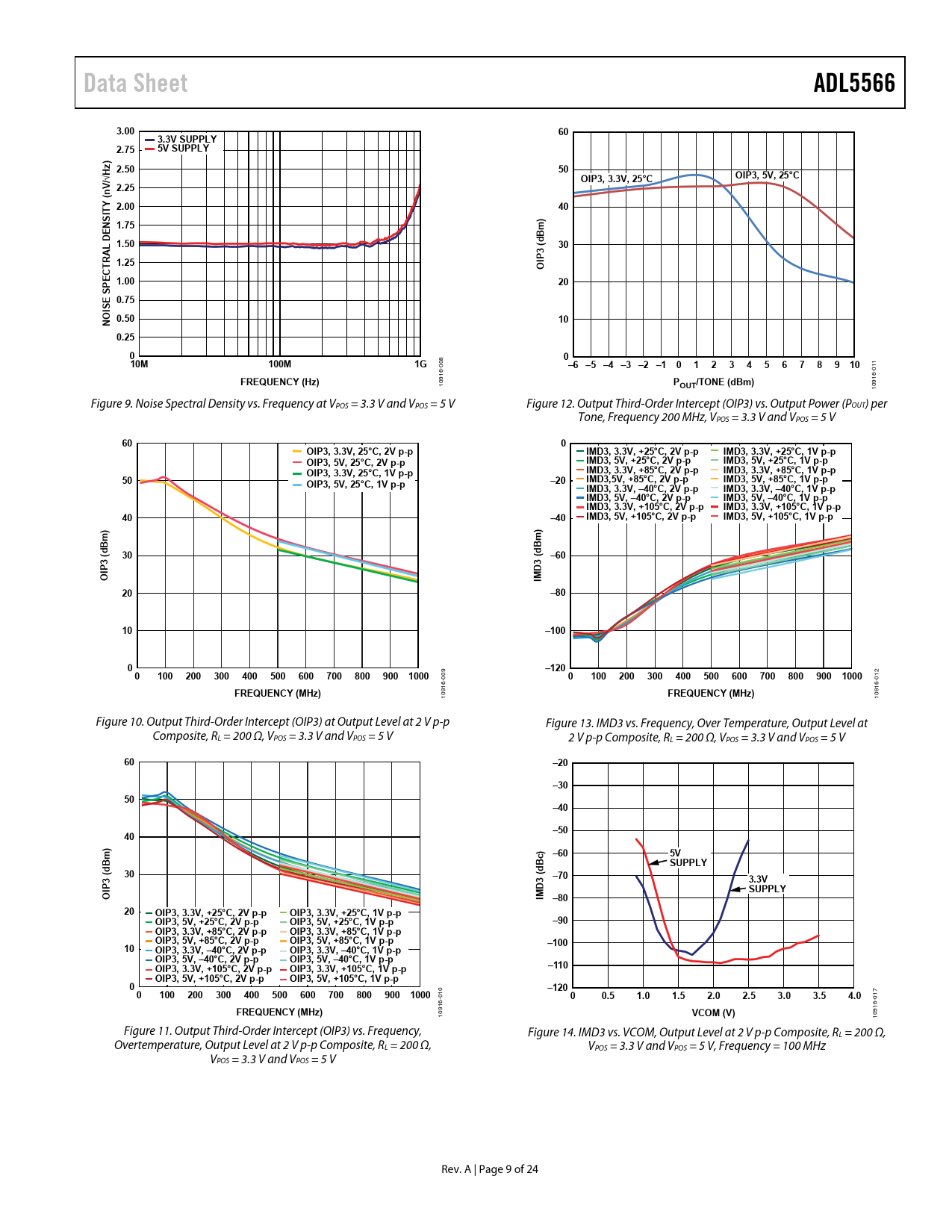 Data Sheet. ADL5566. 3.00. 3.3V SUPPLY. 2.75. 5V SUPPLY. ) 2.50. /√Hz. OIP3, 5V, 25°C. OIP3, 3.3V, 25°C. V 2.25. n Y ( 2.00. NS 1.75. m B. DE 1.50