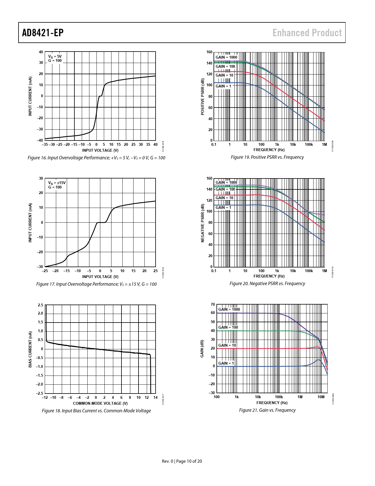1 1 1 Figure 17. Input Overvoltage Performance; VS = ±15 V, G = 100 Figure 20. Negative PSRR vs. Frequency