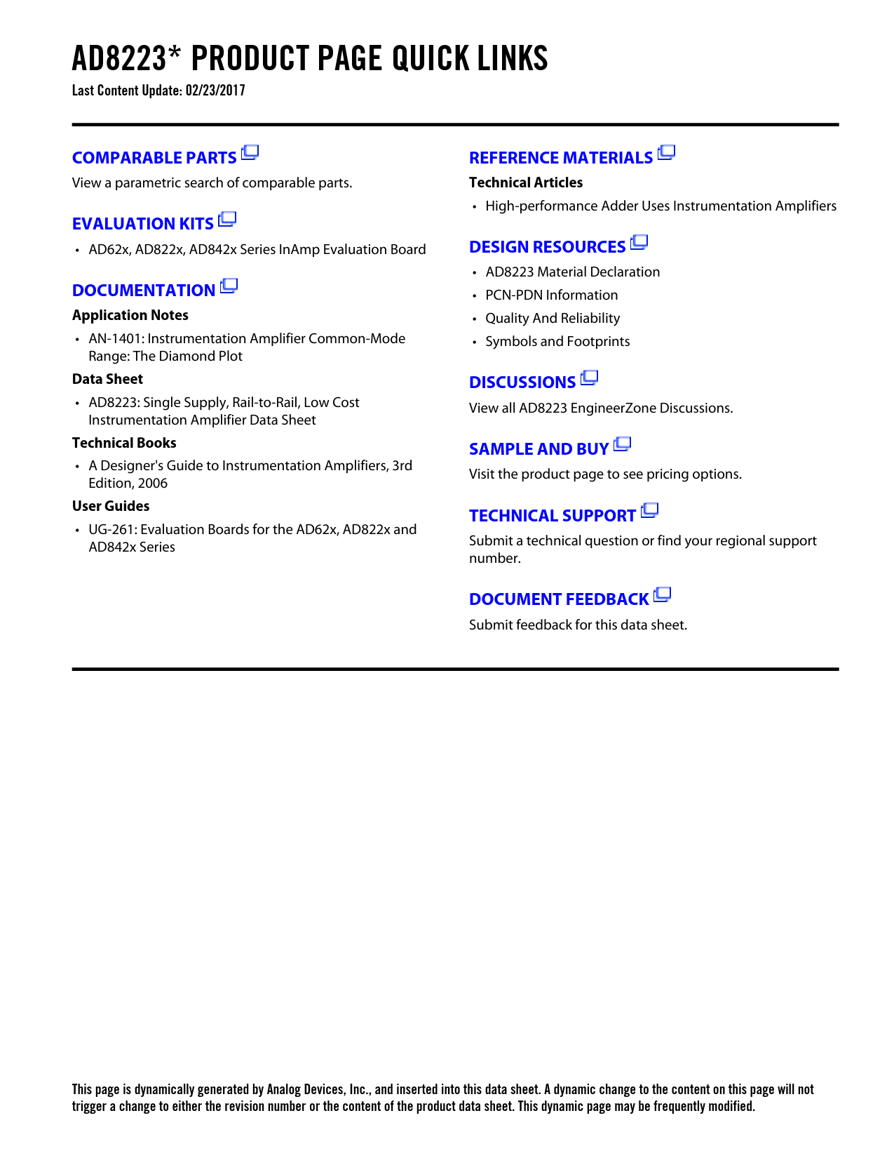 This page is dynamically generated by Analog Devices, Inc., and inserted into this data sheet. A dynamic change to the content on this page will not trigger a change to either the revision number or the content of the product data sheet. This dynamic page may be frequently modified.