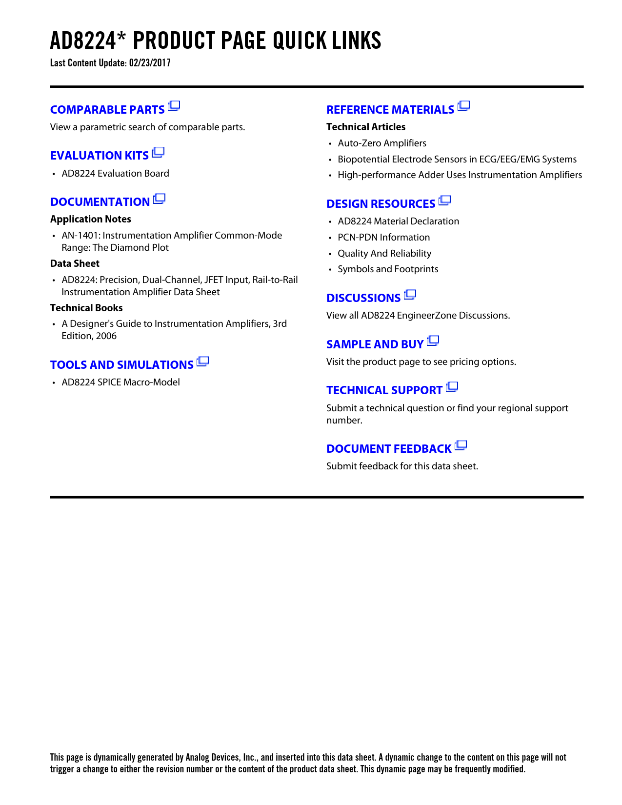 This page is dynamically generated by Analog Devices, Inc., and inserted into this data sheet. A dynamic change to the content on this page will not trigger a change to either the revision number or the content of the product data sheet. This dynamic page may be frequently modified.