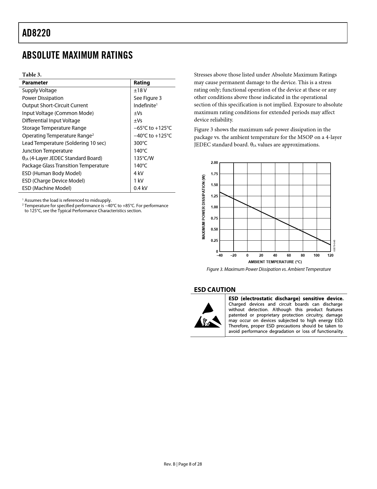 AD8220. ABSOLUTE MAXIMUM RATINGS. Table 3. Parameter Rating. 2.00. 1.75. N (. 1.50. IO AT. IP S. 1.25. R DI. 1.00. E W O P. 0.75. UM IM. 0.50. AX M. 0.25