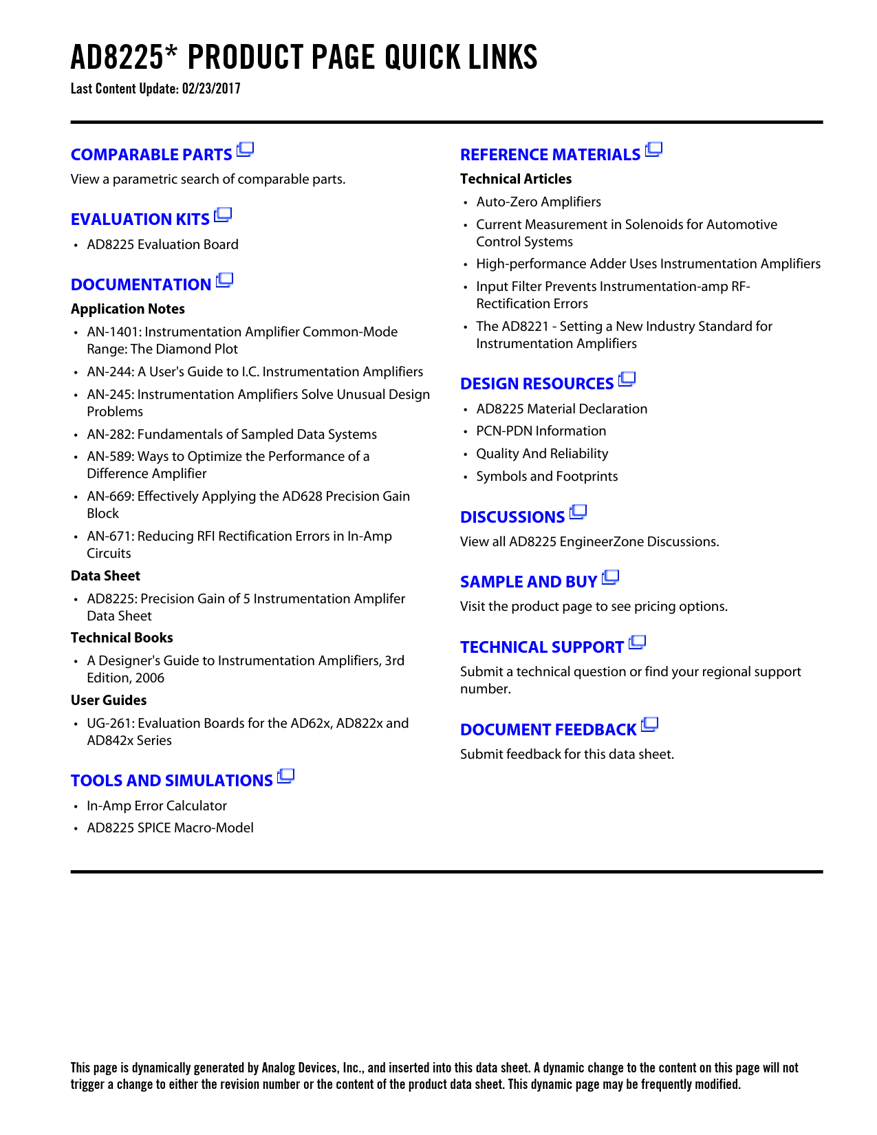 This page is dynamically generated by Analog Devices, Inc., and inserted into this data sheet. A dynamic change to the content on this page will not trigger a change to either the revision number or the content of the product data sheet. This dynamic page may be frequently modified.