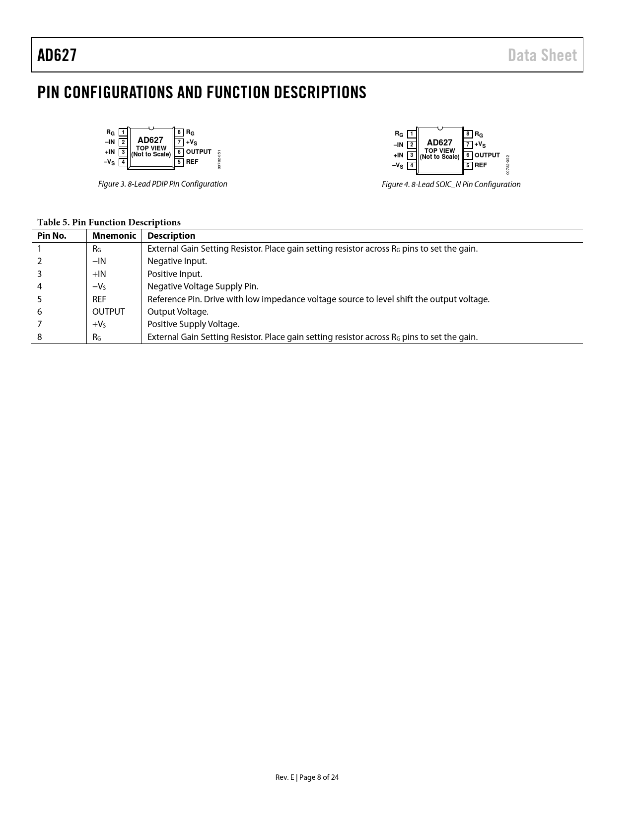 Páginas / Página25 / 9 — AD627. Data Sheet. PIN CONFIGURATIONS AND FUNCTION DESCRIPTIONS. –IN. …