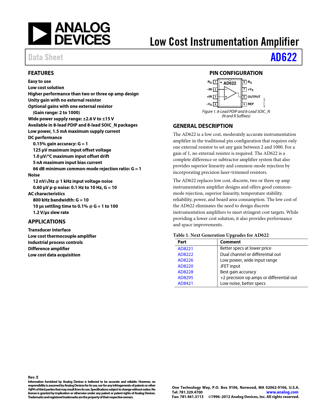 | Páginas / Página | 17 / 1 — Low Cost Instrumentation Amplifier. Data Sheet. AD622. FEATURES. PIN … |