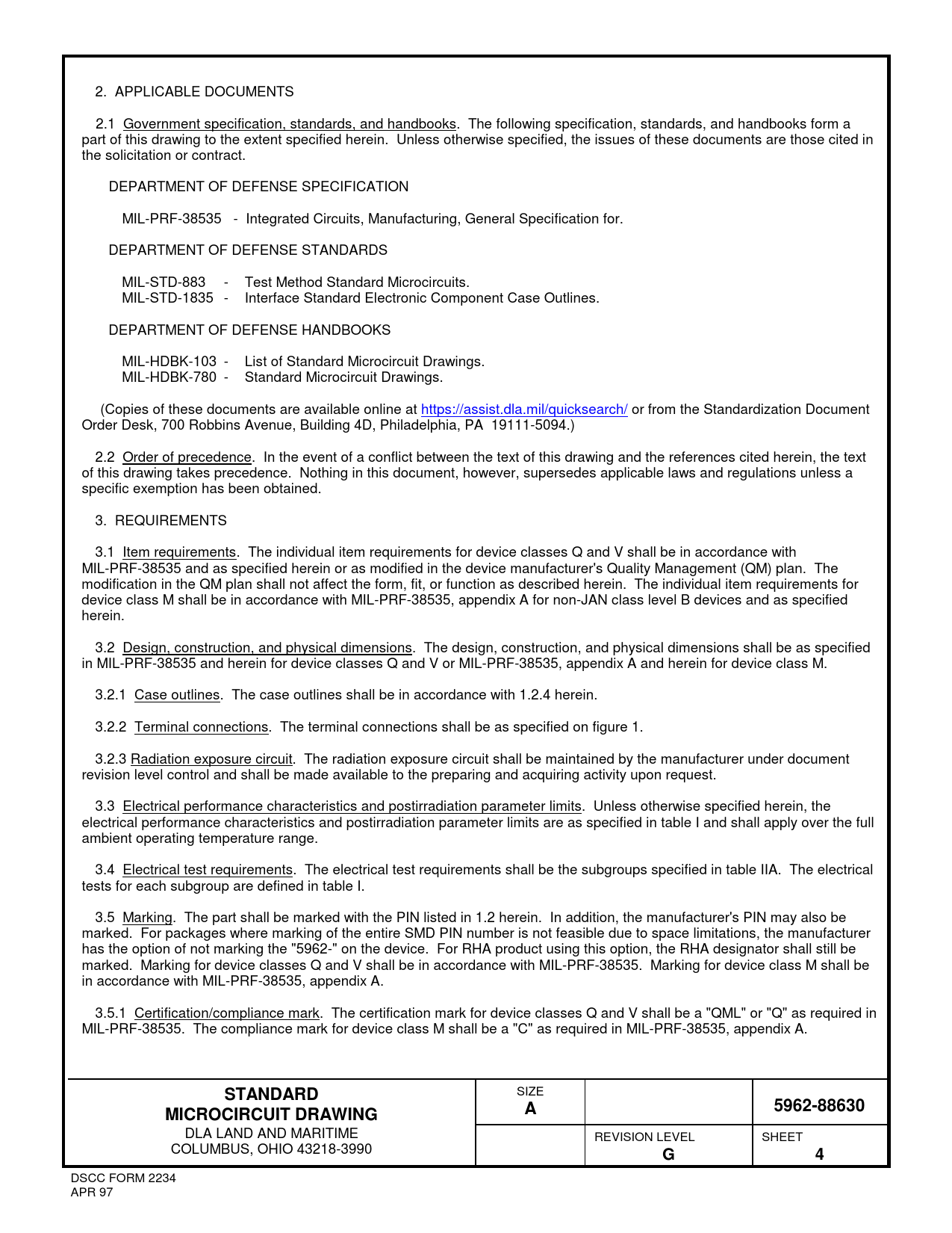 DSCC FORM 2234 APR 97 Document Outline DEPARTMENT OF DEFENSE SPECIFICATION DEPARTMENT OF DEFENSE STANDARDS