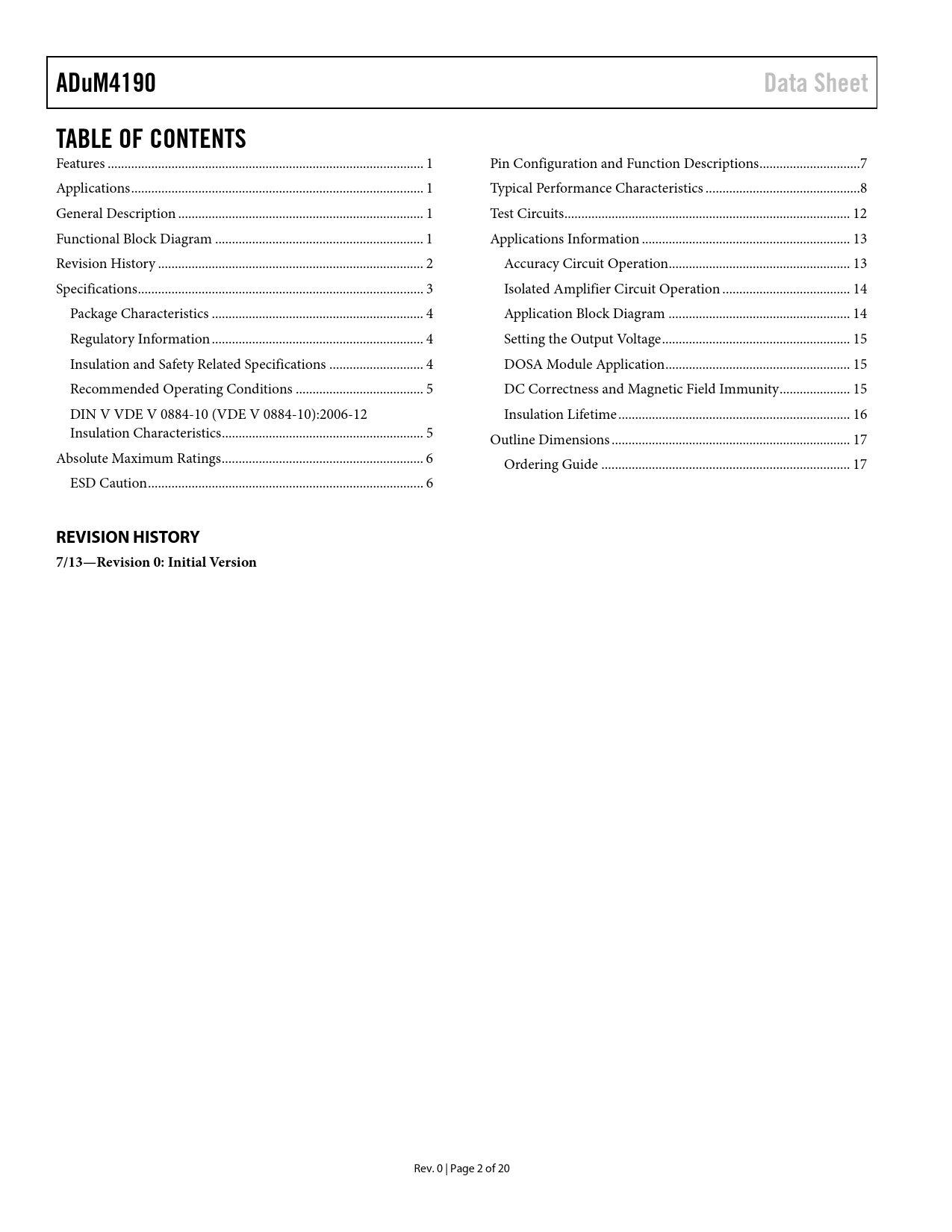 ADuM4190 Data Sheet TABLE OF CONTENTS REVISION HISTORY 7/13—Revision 0: Initial Version