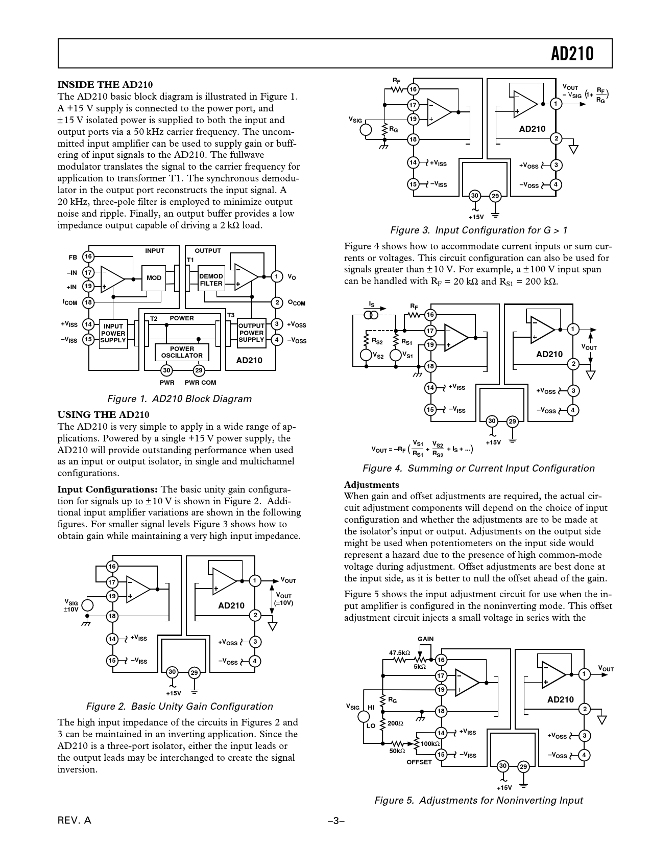 The AD210 is very simple to apply in a wide range of ap- plications. Powered by a single +15 V power supply, the