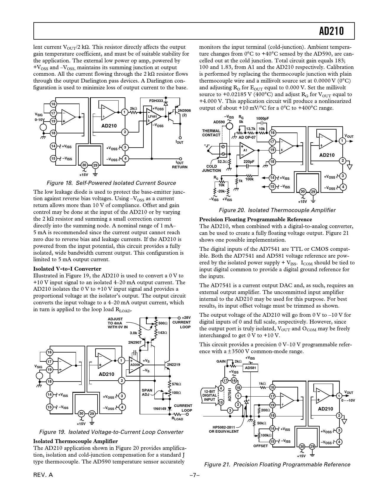type thermocouple. The AD590 temperature sensor accurately Figure 21. Precision Floating Programmable Reference REV. A –7–