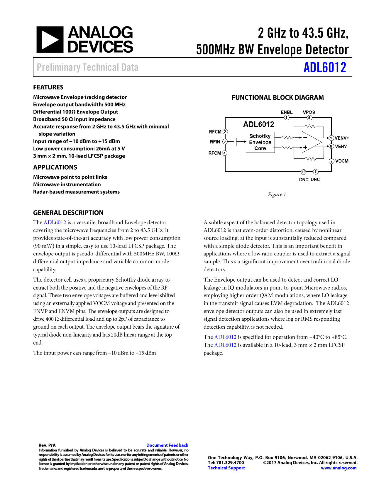 Rev. PrA Document Feedback Information furnished by Analog Devices is believed to be accurate and reliable. However, no responsibility is assumed by Analog Devices for its use, nor for any infringements of patents or other rights of third parties that may result from its use. Specifications subject to change without notice. No One Technology Way, P.O. Box 9106, Norwood, MA 02062-9106, U.S.A. license is granted by implication or otherwise under any patent or patent rights of Analog Devices. Tel: 781.329.4700 ©2017 Analog Devices, Inc. All rights reserved. Trademarks and registered trademarks are the property of their respective owners. Technical Support www.analog.com