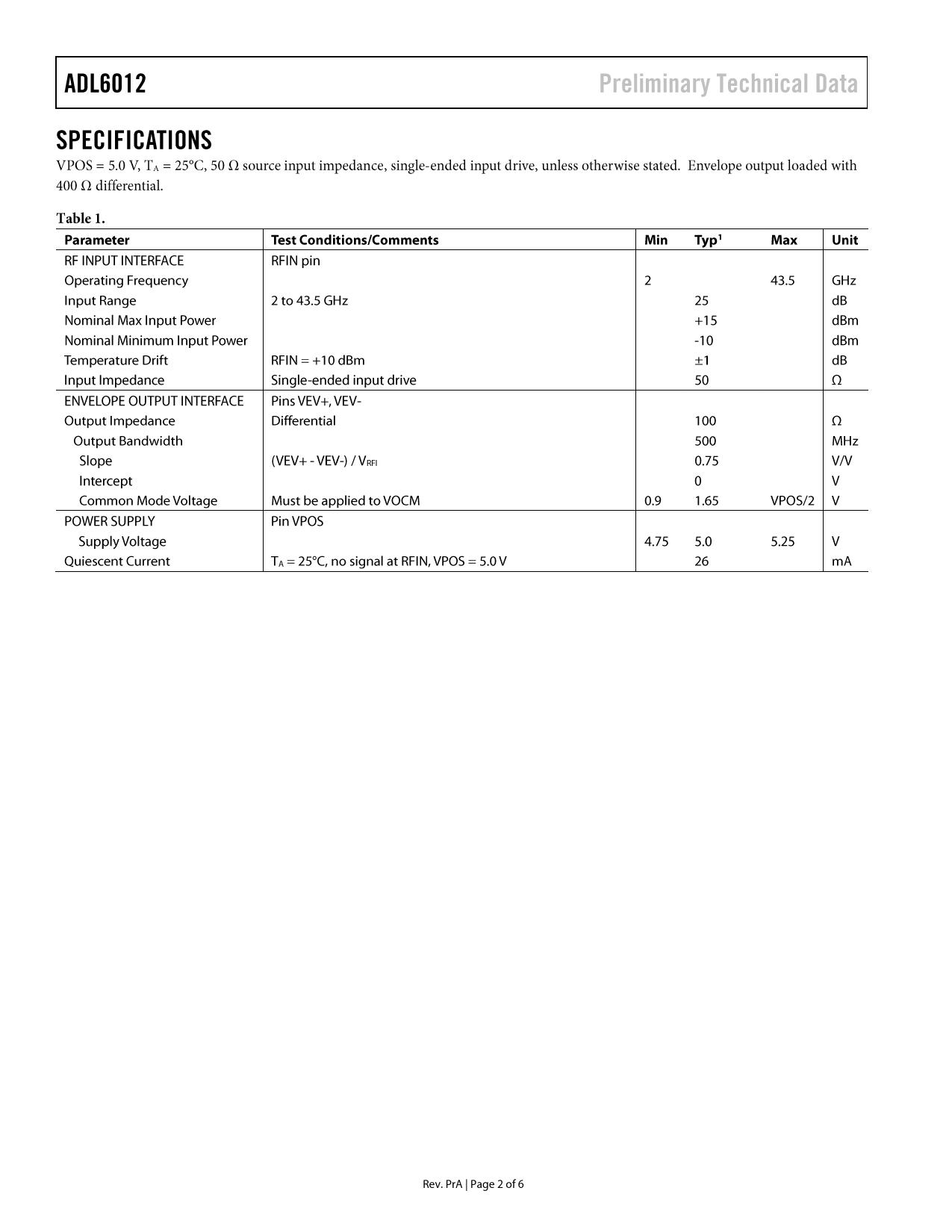 Datasheet ADL6012 (Analog Devices)