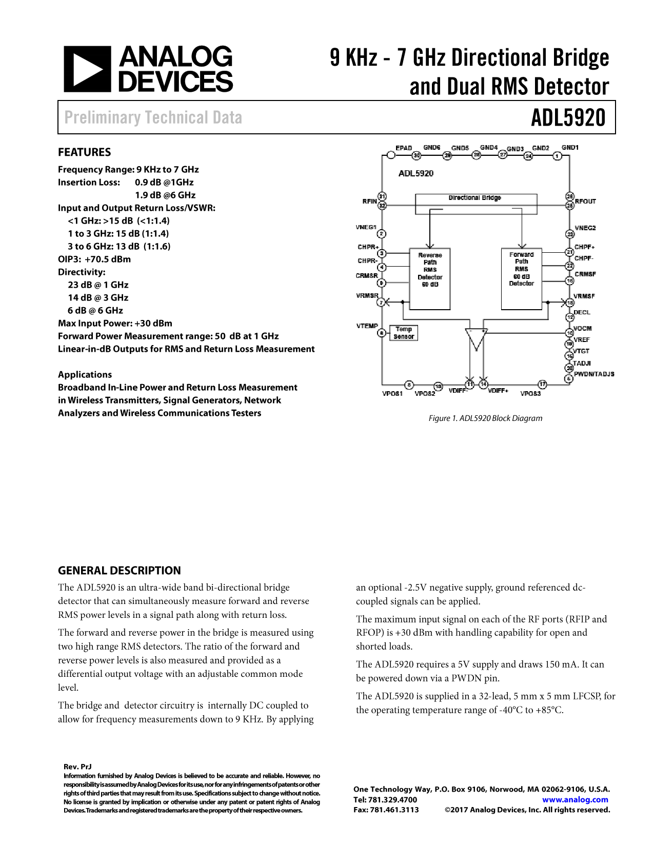 9 kHz to 7 GHz, Bidirectional RMS and VSWR Detector