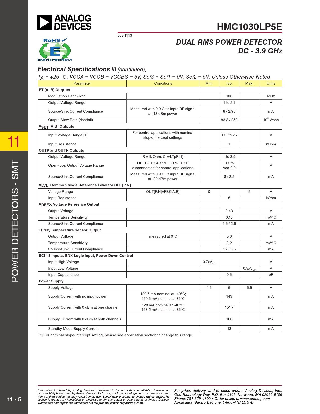 HMC1030LP5E. DUAL RMS POWER DETECTOR. DC - 3.9 GHz. Electrical Specifications III. ET [A, B] Outputs. VSET [A,B] Outputs